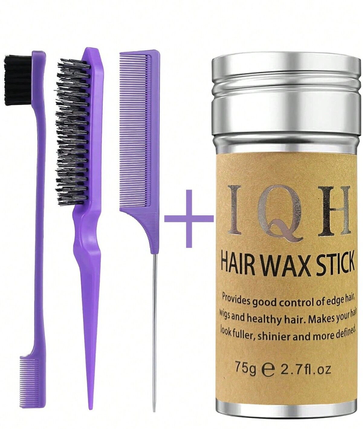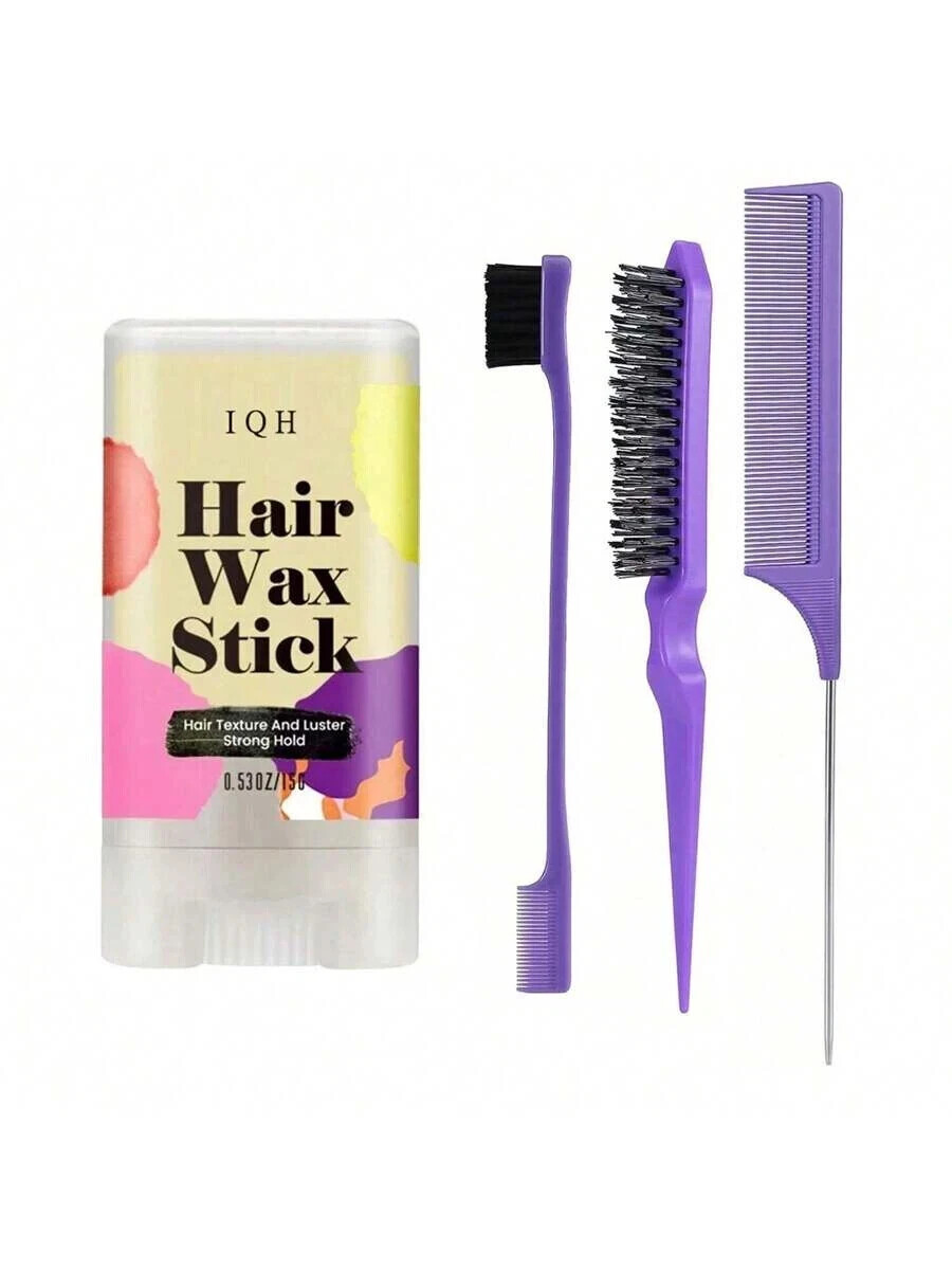 Hair Wax Stick,Slick Back Hair Brush for Hair, Non-Greasy Hair Wax Sticks for Styling Puffs and Wigs,Combing Brush for Loose Hair,Rat Tail Comb for Separation,Edge Brush for Finishing