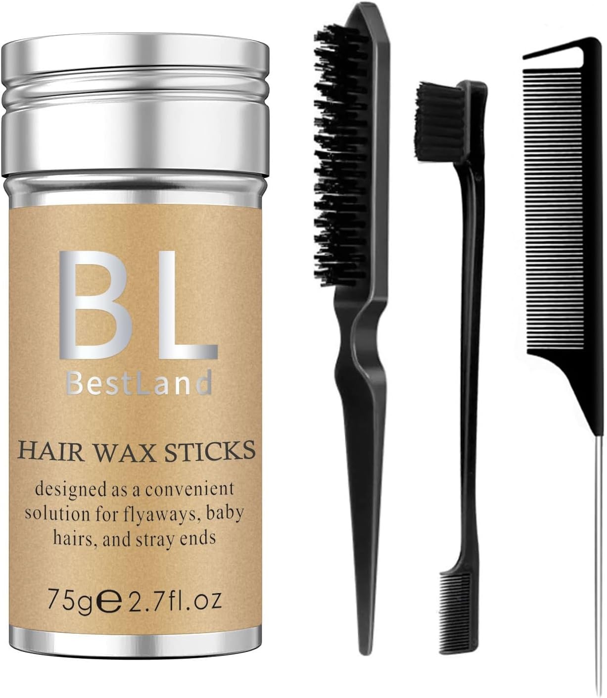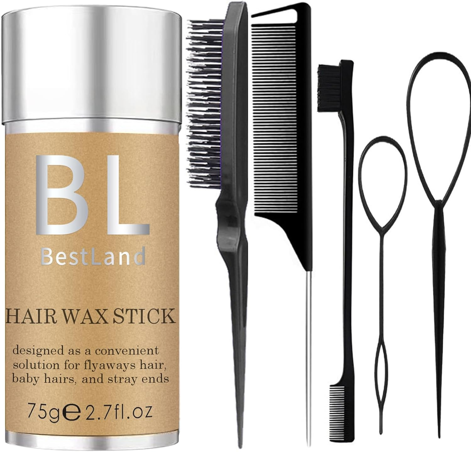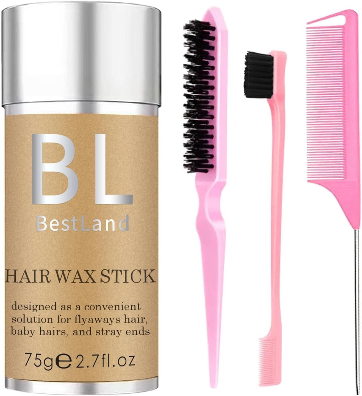 Hair Wax Stick & Combs 4Pcs, Edge Control & Slick Styling, Teasing Brush for Loo