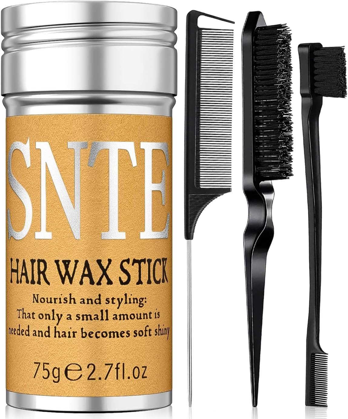 Hair Wax Stick & Slick Back Hair Brush Set, Edge Control Styling Brush Hair Fini