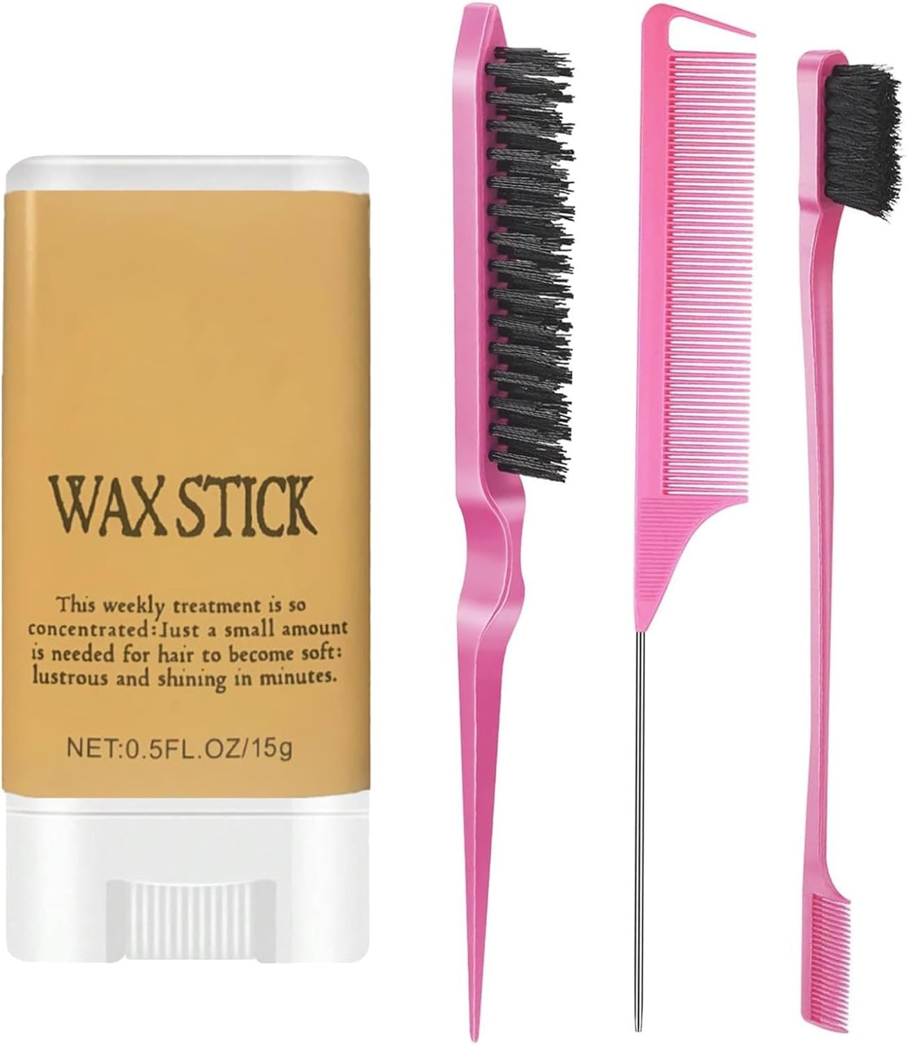 Hair Wax Stick & Pink Brush Set -Versatile Hair Styling Kit, Long-Lasting Anti-F