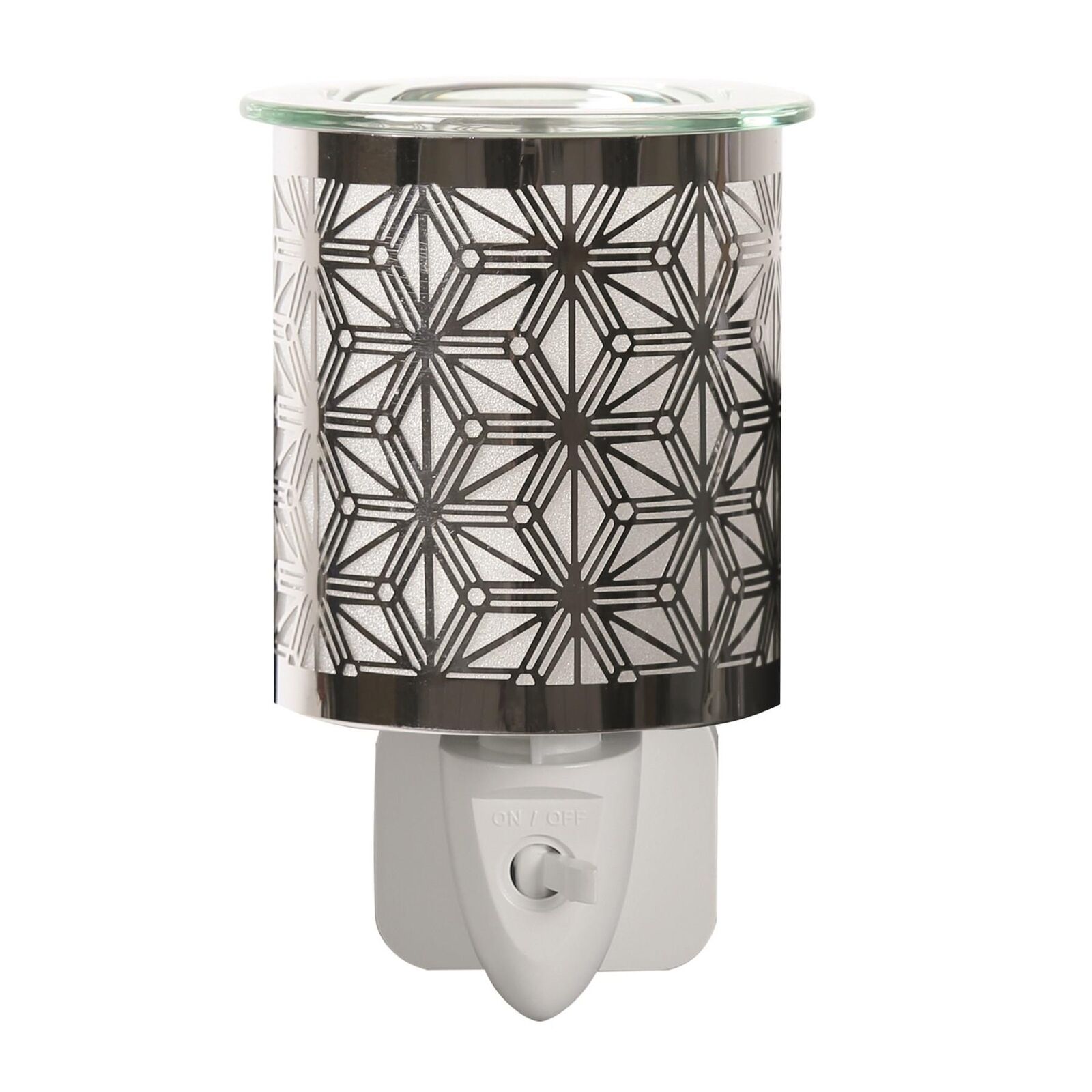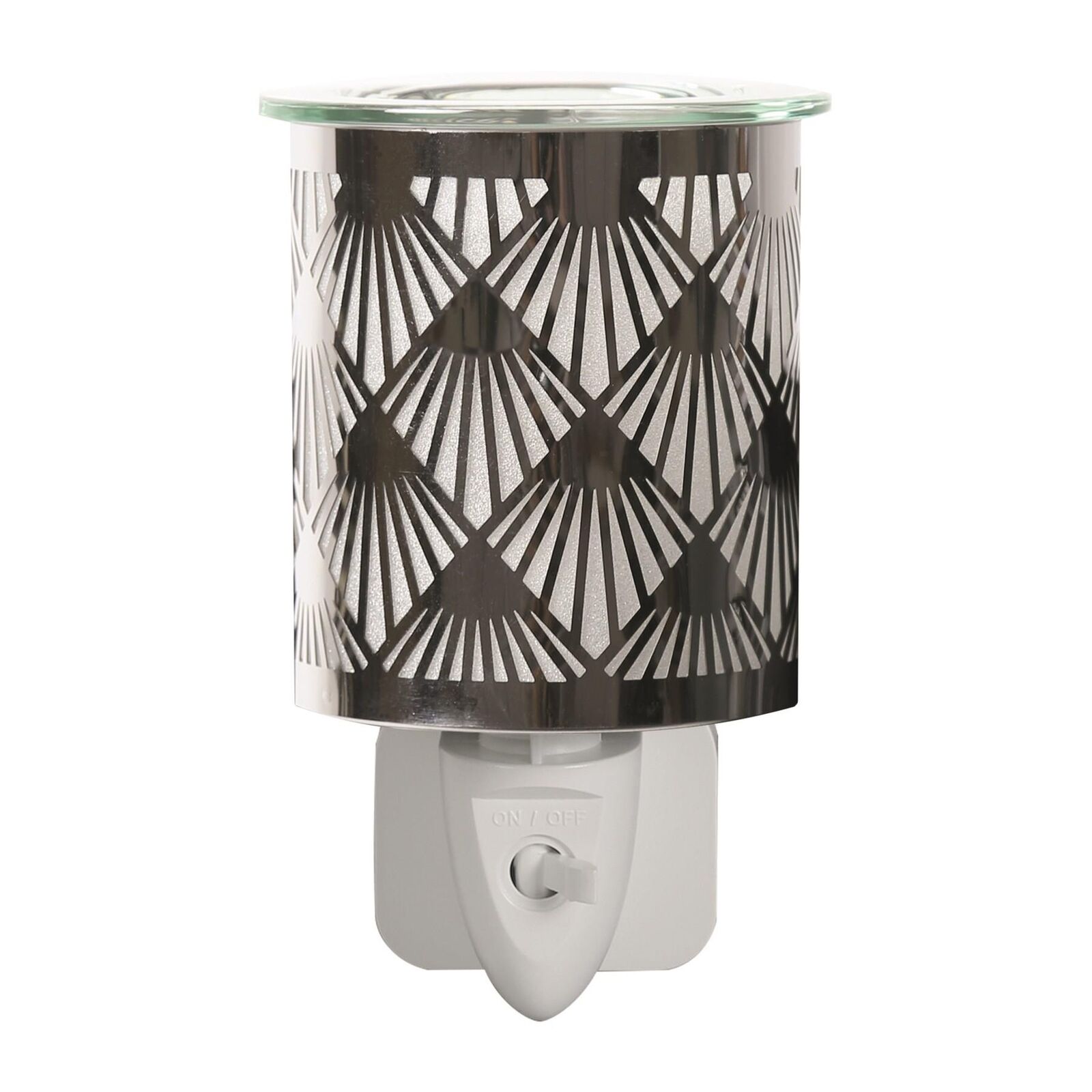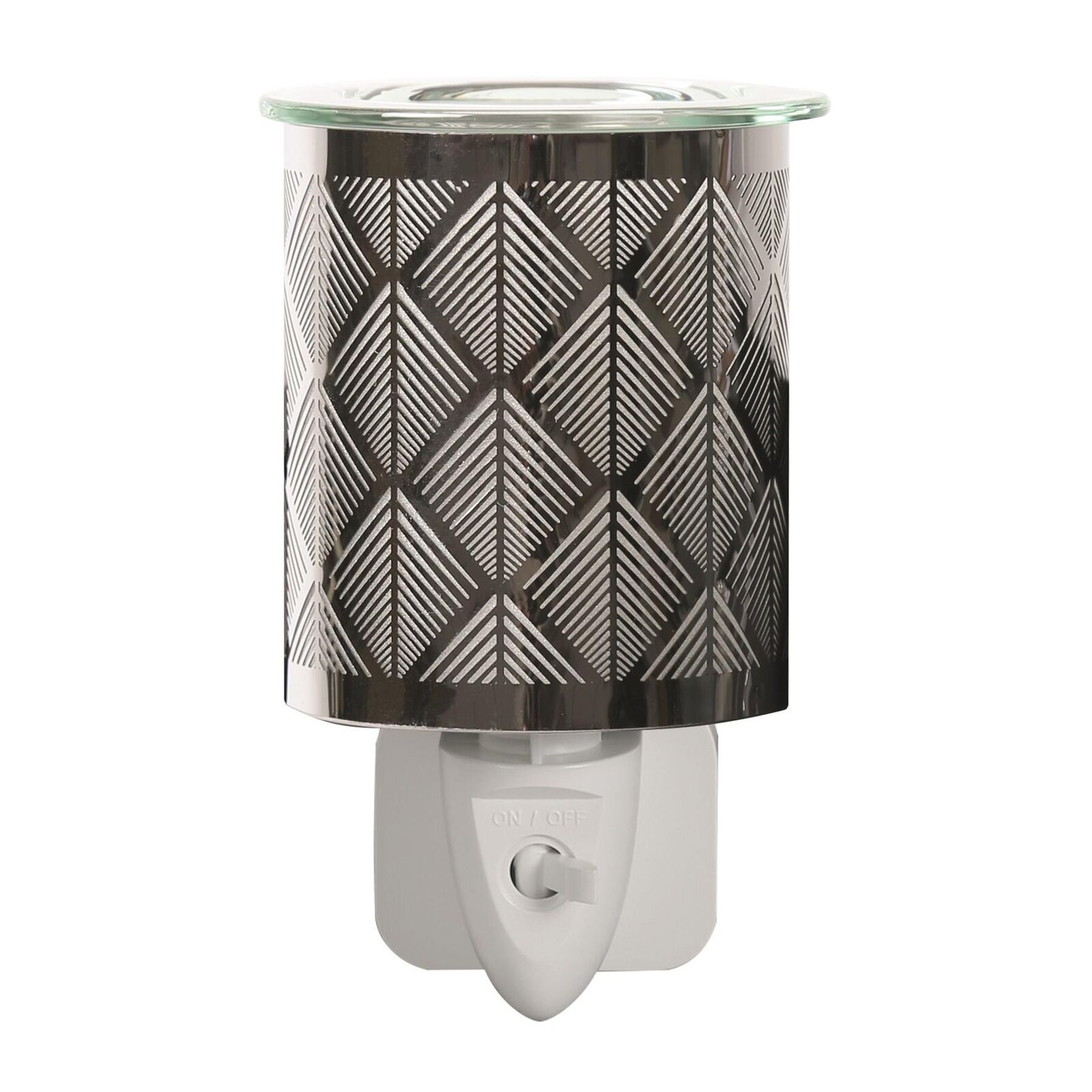 Wax Melt Burner Electric Plug Warmer Melter Fragrance Oil Chrome Chevron Aroma