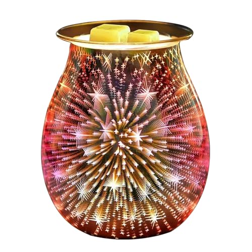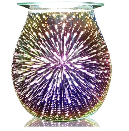 M.J COMFY-LIFE Electric Wax Melt Burner Wax Warmer Oil Burner 3D Firework Deisgn Night Light Oil Lamp Glass Essential Oil Burner Aroma Decorative Lamp Candle Warmer Melter LED Night Lamp
