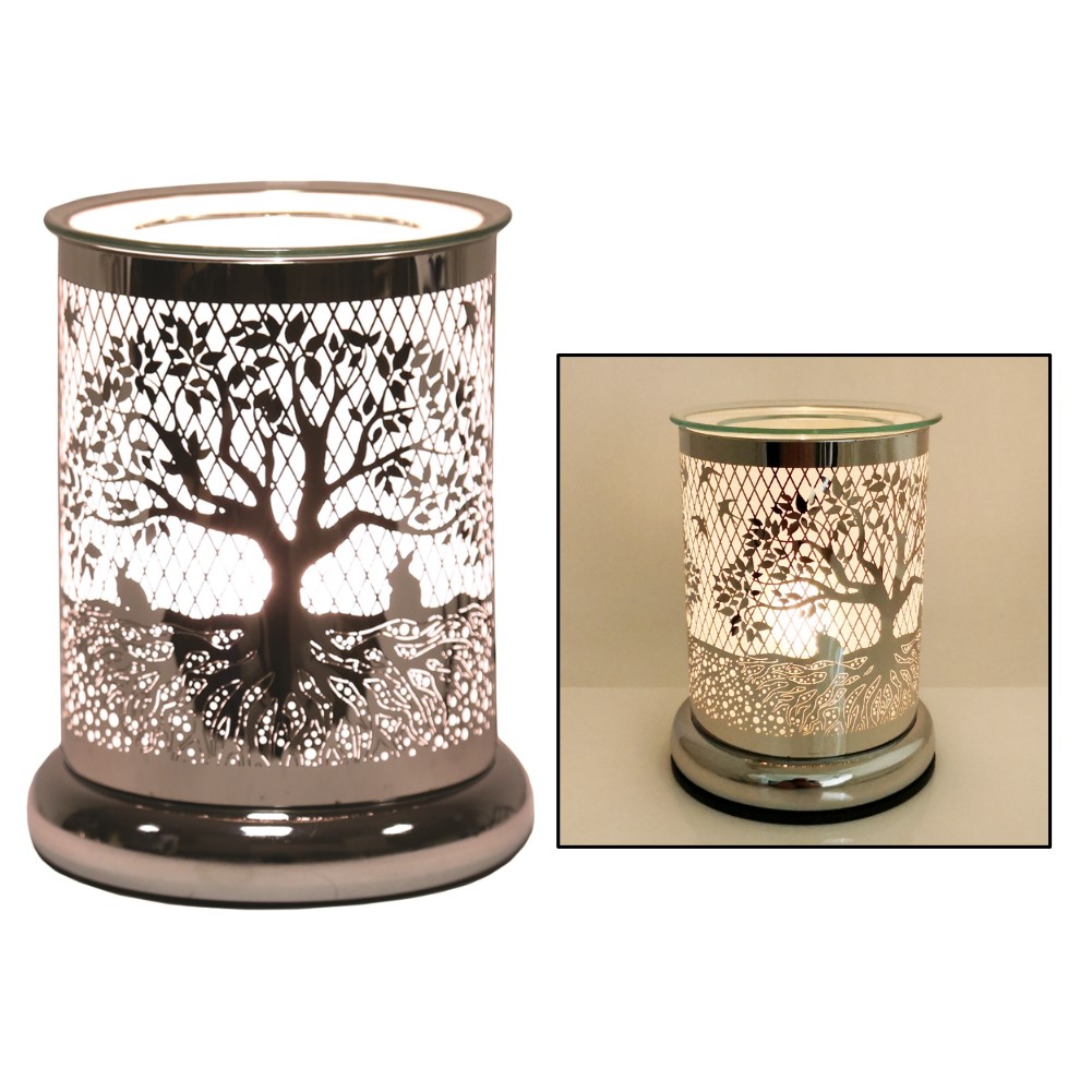 Wax Melt Burner Electric Plug Warmer Melter Fragrance Oil Chrome Tree of Life