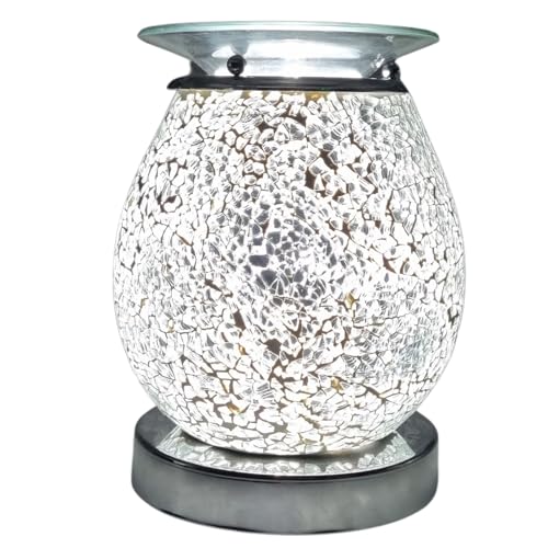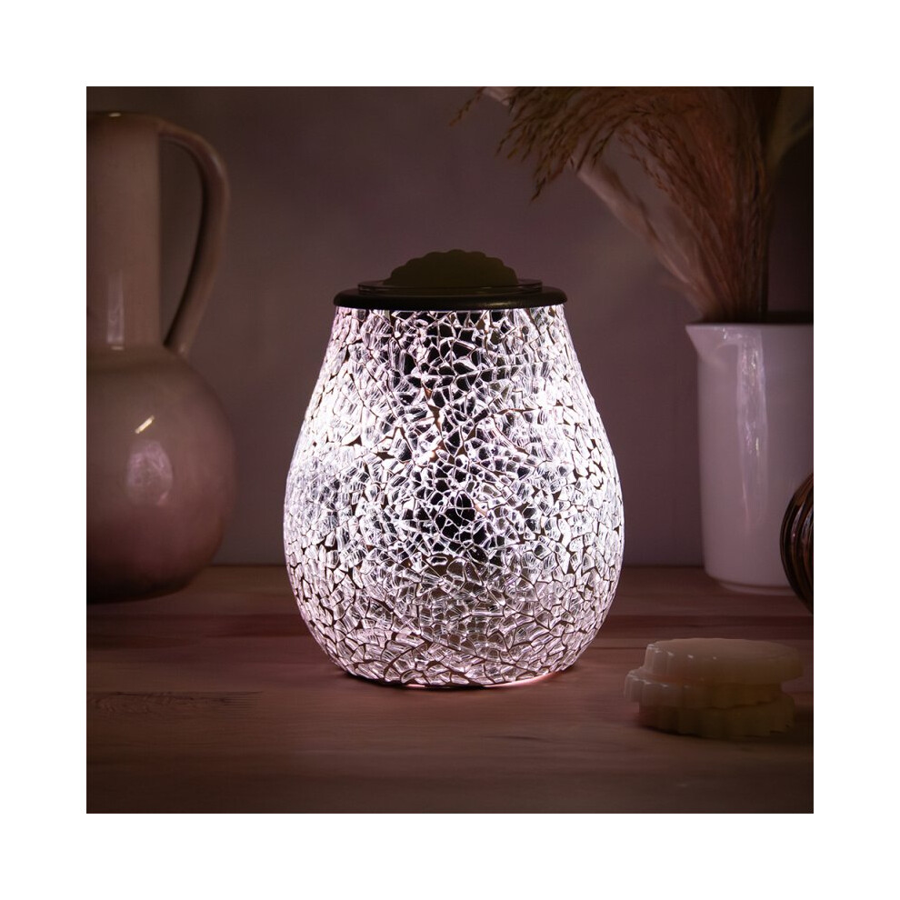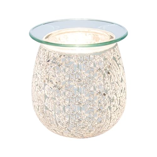 Wax Melt Warmer Oil Burner Electric Aroma Diffuser Lamp Silver Crackle Mosaic