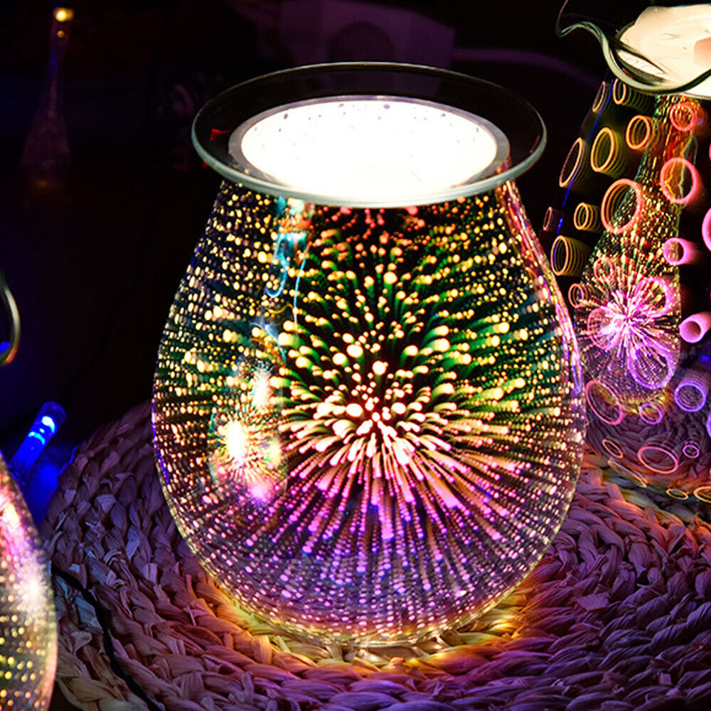 3D Glass Electric Oil Wax Melt Burner Warmer Firework Fragrance Aroma Night Lamp