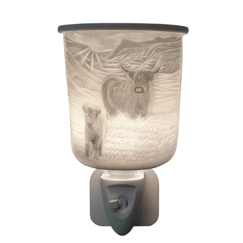 Cello Plug In Wax Melt Burner - Highland Cow Design - Oil Burner. The Electric Wax Burner Creates a Stunning Illumination of a Cow. Highland Cow Gifts, Ornament and Porcelain Decor.