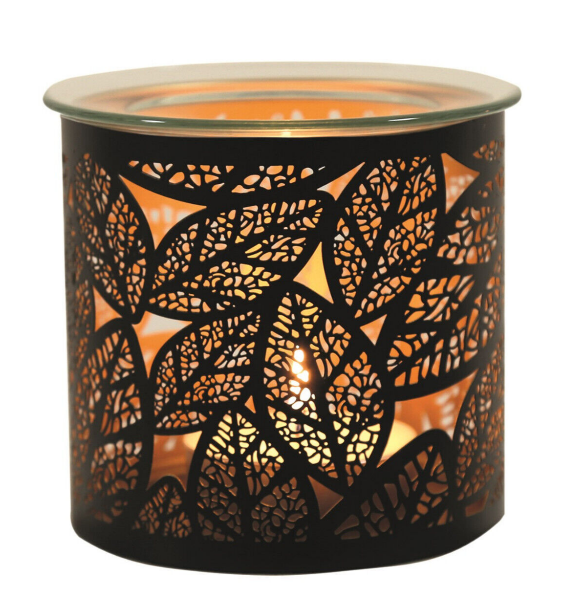 Leaves Tea Light Oil Burner Glass Wax Melt Warmer Metal Candle Holder Gift Idea