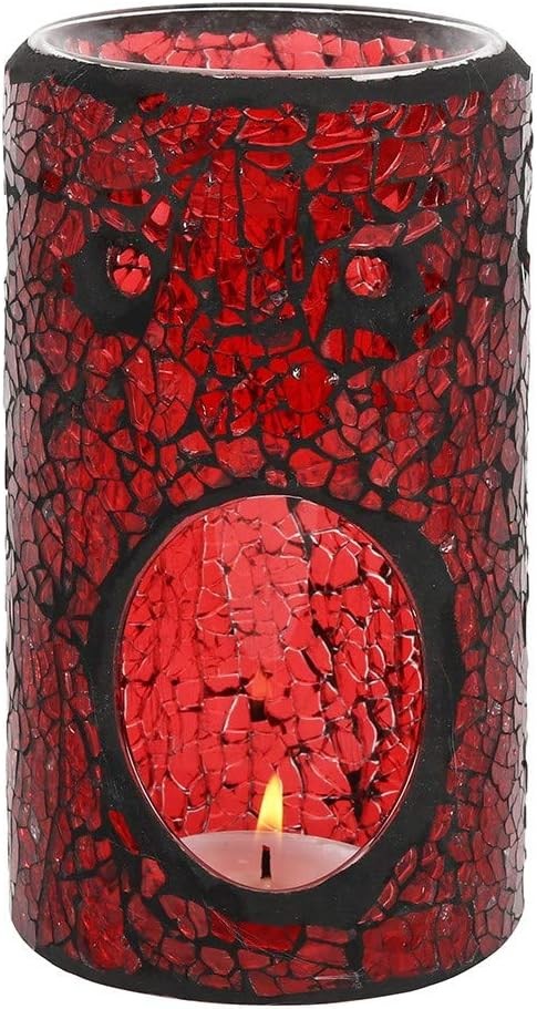 Wax Melt Burner, Red Crackle Glass Design Oil Burner, Round Tea light holder, w