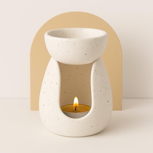 Ceramic Essential Oil Burner – Wax Melt Burner with Tealight Holder – Speckled Aromatherapy Diffuser for Home, Spa, Yoga & Meditation – Heat-Resistant, Removable Bowl, Easy to Clean – Relaxing Gift