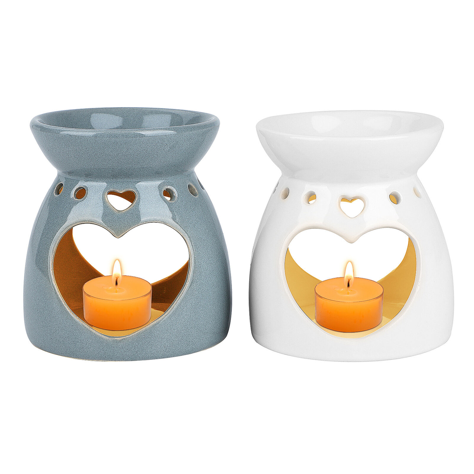 ComSaf Essential Oil Burners Set of 2, Ceramic Scented Wax Melt Warmer with Tealight Candle Holder Decorative Aromatherapy Burner for Home Office Birthday Wedding Gift