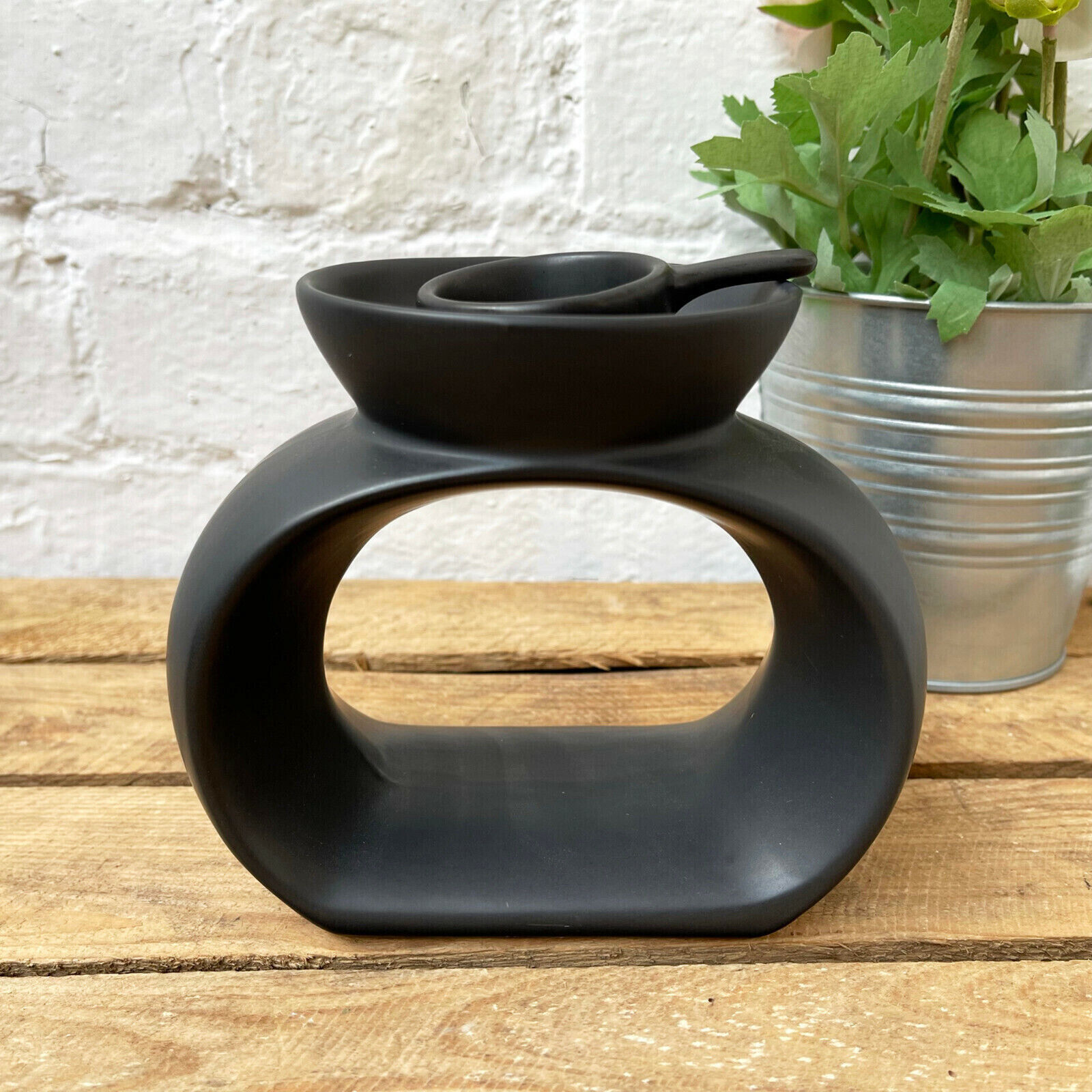Wax Melt Burner Black Ceramic Tea Light Holder Spoon Aromatherapy Oil Warmer