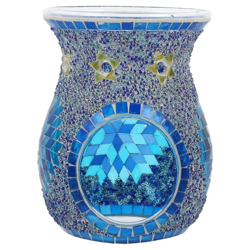 Uonlytech Mosaic Glass Oil Burner Bohemian Fragrance Oil Burner Tealights Wax Melt Stove Holder for Gifts Home Decoration Without Candle 10. 514. 2cm Blue