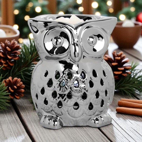 Silver Owl Tea Light Scented Wax Melt Warmer Oil Burner Tealight Candle Holder