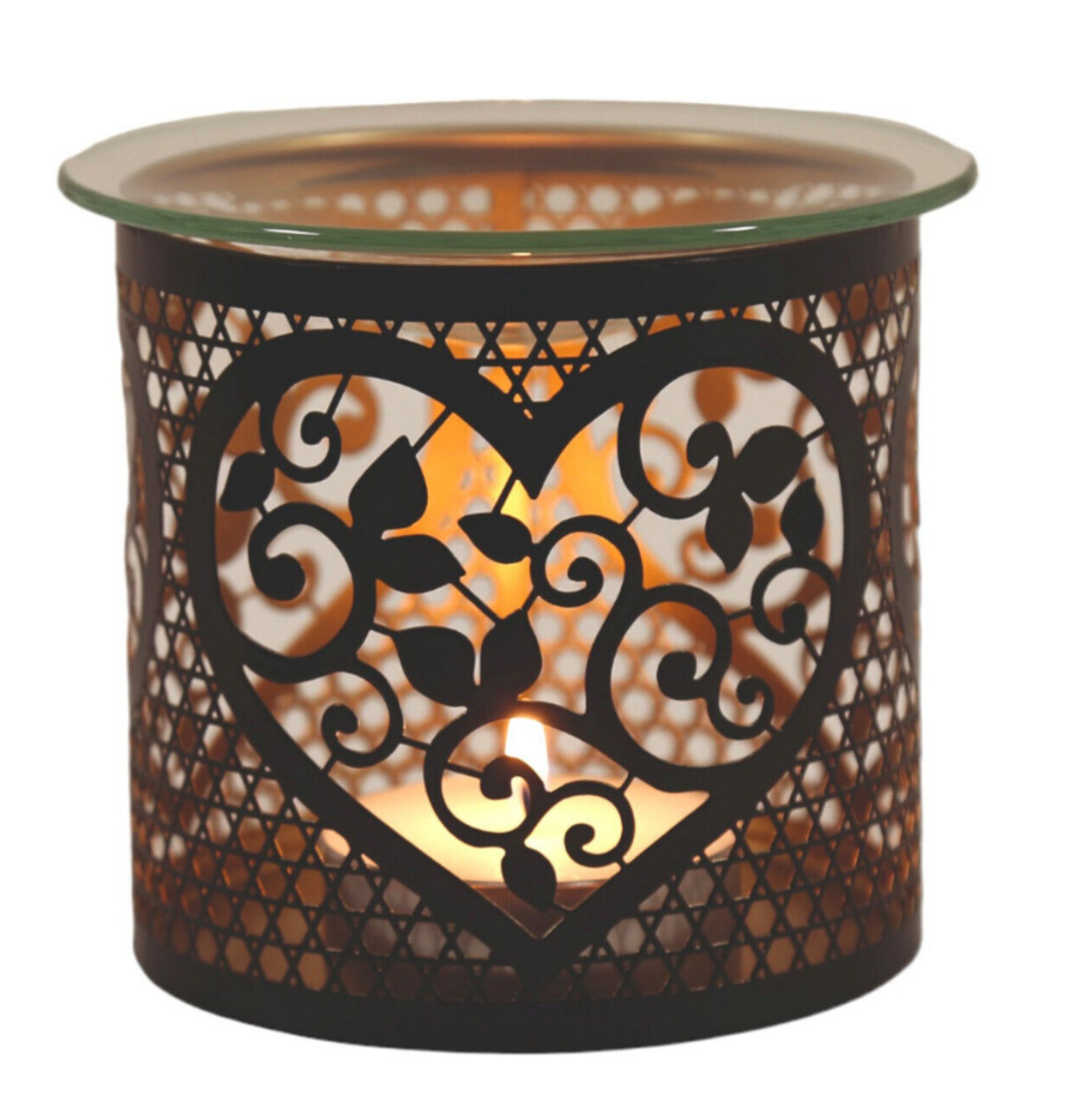 Heart Tea Light Oil Burner Glass Wax Melt Warmer Metal Candle Holder Gift Idea