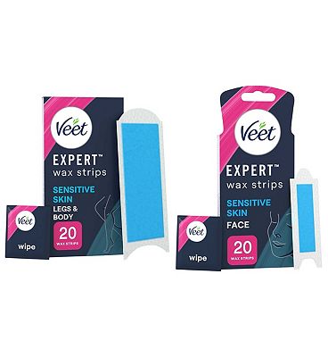 Veet Expert Wax Strips Legs Body Sensitive Hair Removal - 20s
