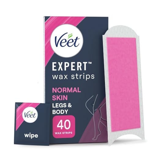 Veet Expert Cold Wax Strips, Legs & Body, Normal Skin, 40 Wax Strips (4 Finish Wipes with Argan Oil), with Shea Butter, Removes Shortest Hair from Root, 28 Days Smoothness