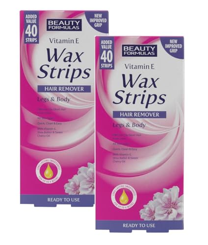 Beauty Formulas Vitamin E Cold Wax Strips 40s – Pack of 2 (80 Strips Total) – Hair Remover for Legs & Body