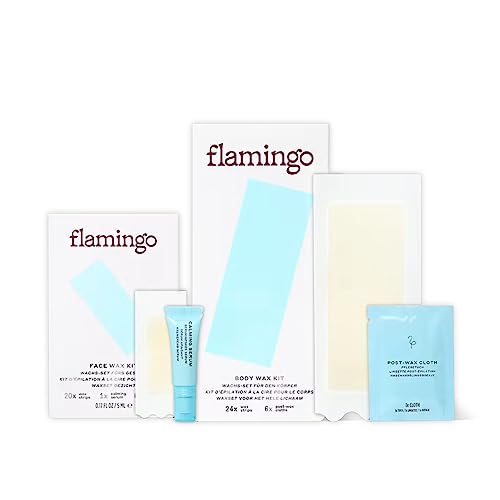Flamingo Head to Toe Wax Kit - Women's Waxing Kit with 24 Body Wax Strips, 20 Face Wax Strips, 12 Post-Wax Cloths and 1 Calming Serums
