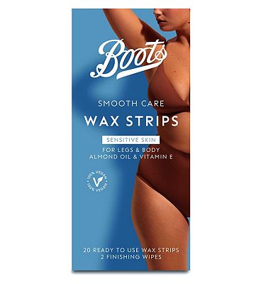 Boots Smooth Care Wax Strips Sensitive Legs & Body 20pk + Perfect Finishing Wipes 2pk