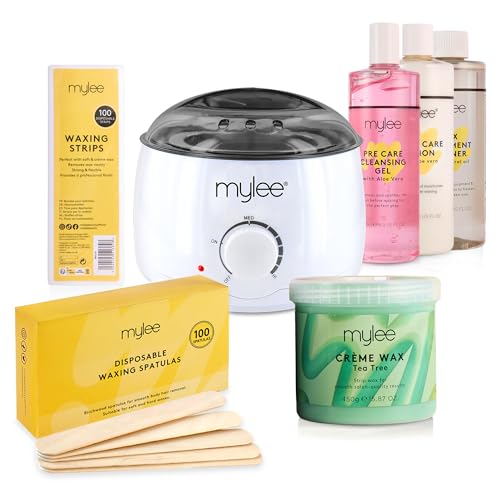 Mylee Complete Waxing Kit, Includes Salon Quality Wax Heater, Soft Cream Wax, Waxing Strips, Spatulas and Mylee Pre & After Care Lotion (Tea Tree)