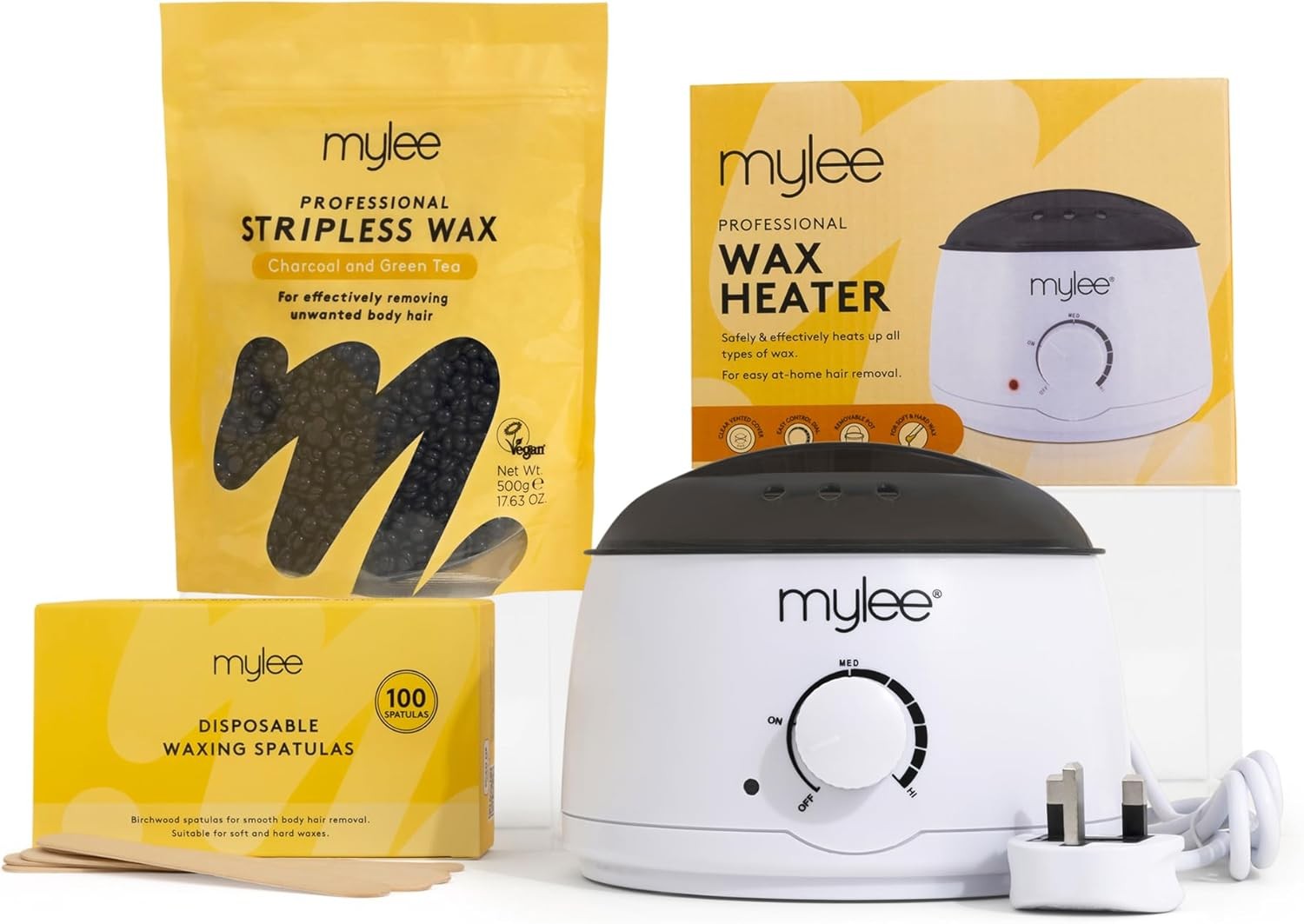 Mylee Professional Waxing Kit with Wax Heater, Hard Wax Beads 500g, Spatulas -