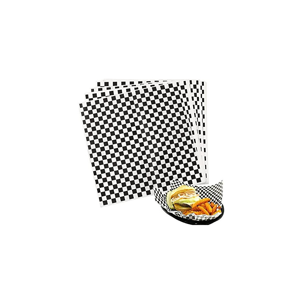 Fit Meal Prep 250 Sheets 12x12 Deli Paper Sheets Black and White Checkered Dry Waxed Sandwich Wrapping Paper Grease-Proof Wax Paper for Food Basket
