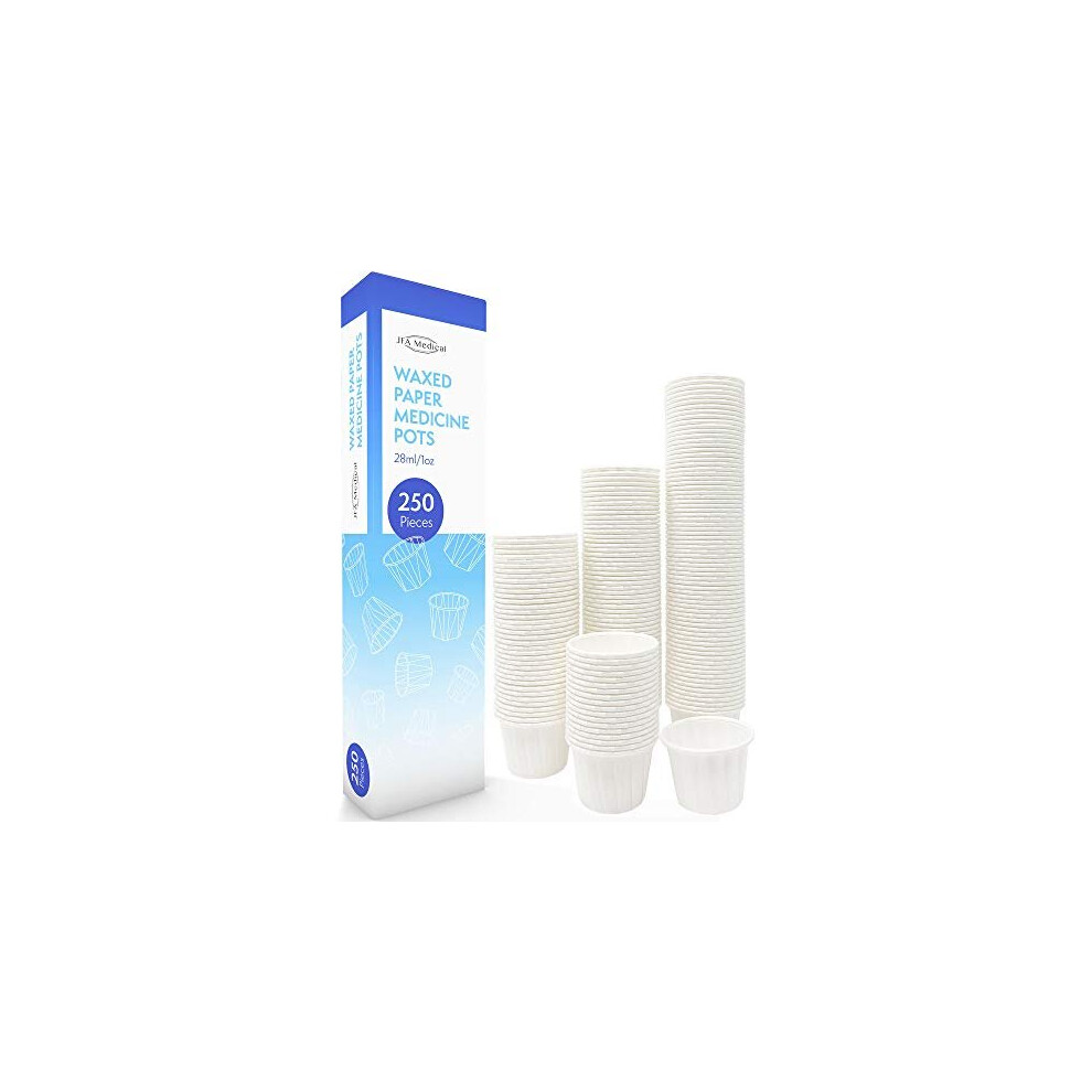 JFA Medical Wax/Waxed Paper Medicine Pots, Ramekin, Soufflé Cups, Portion Cups, Sauce Dipping Pots, 28ml / 1oz - Pack of 250 Pieces
