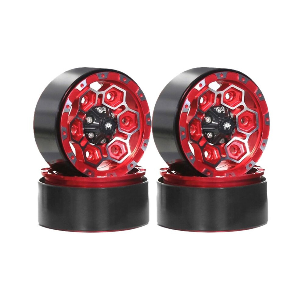 4Pcs Metal 1.9In Beadlock Wheel Rim Wheel Hub for 1/10 RC Crawler Car Axial SCX10 Pro Capra TRX4 RC4WD/D90 Redcat Red