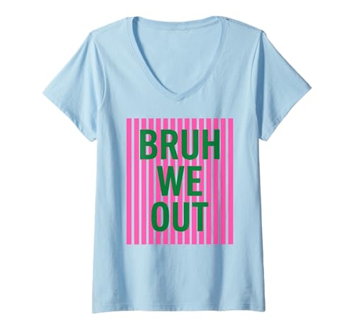 Women's Bruh We Out Final Bell Goodbye Class Pink Striped Vibe V-Neck T-Shirt