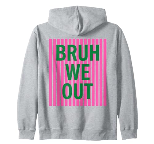 Bruh We Out Final Bell Goodbye Class Pink Striped Vibe Zip Hoodie