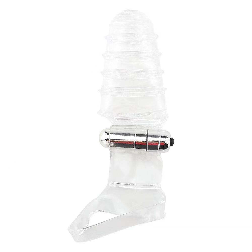 Clear Vibrating Clit Stim Hand Sleeve (Ribbed) - Ribbed Wearable Vibrator Toy