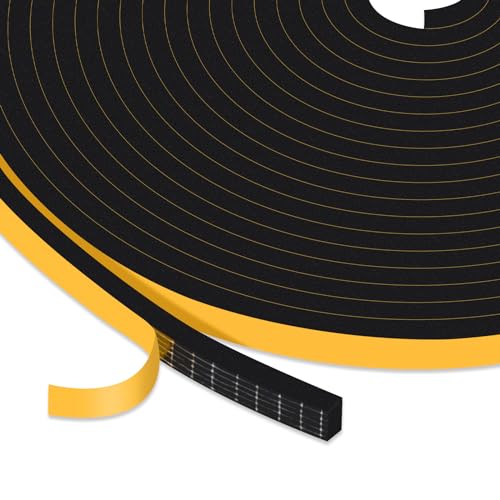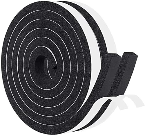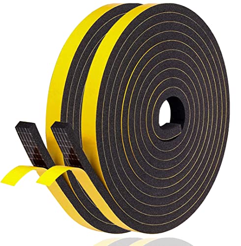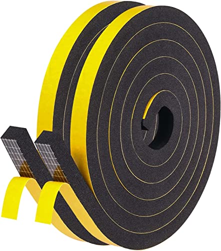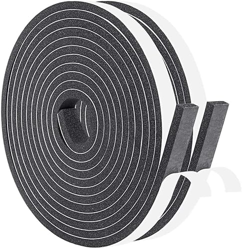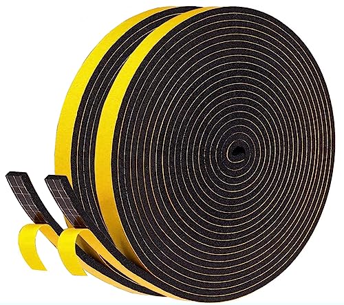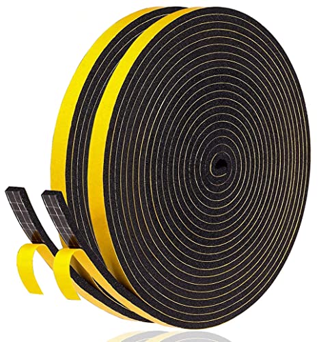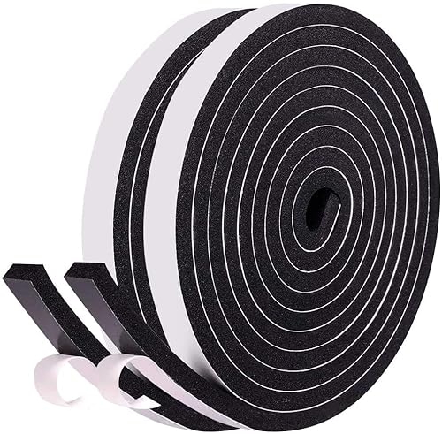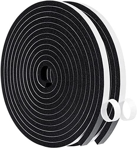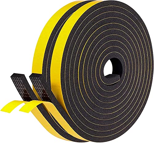 YANKUIRUI Draft Excluder Foam Seal Tape, 10mm(W) x 6mm(T) High Density Adhesive Foam Weather Strip Seal for Window and Door, 2 Rolls, Total 10M Long Black