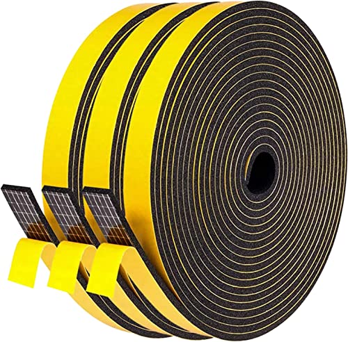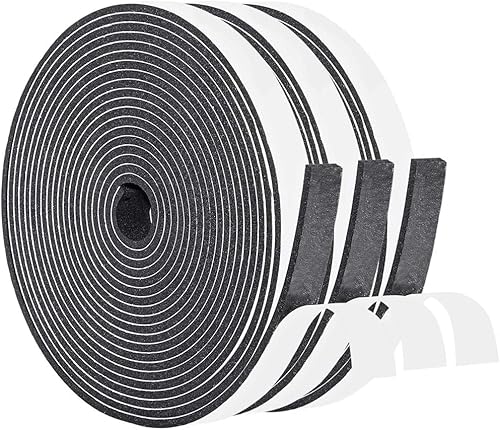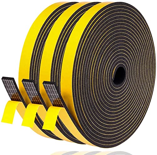 Weather Stripping Self Adhesive Foam Tape 12mm(W) x 3mm(T) Window Door Draught Excluder SoundProof Weather Strip Tape Seals for Gap Seal,3 Rolls, Total 15M Long Black