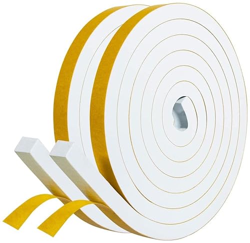 Draft Excluder Foam Seal Tape, 20mm(W) x 10mm(T) High Density Adhesive Foam Weather Strip Seal for Window and Door, 2 Rolls, Total 4M Long White