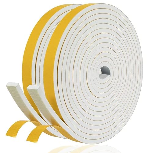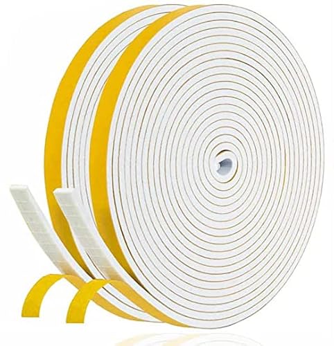 YANKUIRUI Draft Excluder Foam Seal Tape, 6mm(W) x 3mm(T) High Density Adhesive Foam Weather Strip Seal for Window and Door, 2 Rolls, Total 20M Long White