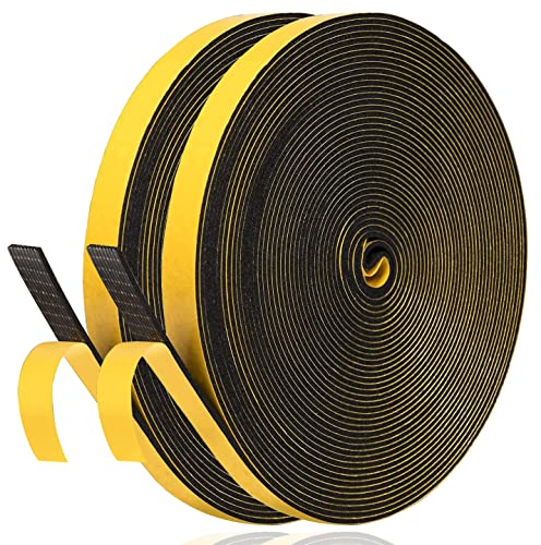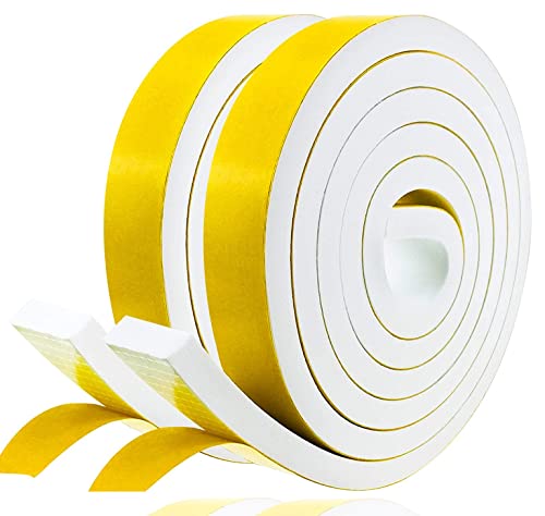 Yotache Foam Seal Tape 2 Rolls 10mm Wide X 6mm, High Density Adhesive Foam Weather Strip Seal for Window and Door, 8m Length (2 X 4m Each)