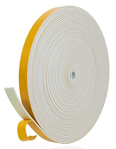 Draft Excluder Foam Seal Tape, 12mm(W) x 1.5mm(T) High Density Adhesive Foam Weather Strip Seal for Window and Door, 1 Roll, Total 10M Long White