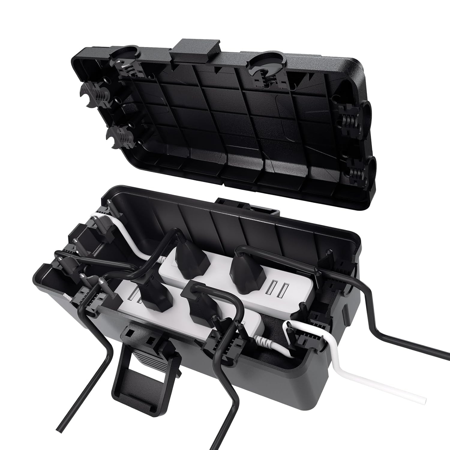 [2 PACK] RESTMO Outdoor Waterproof Box (29 × 13.2 × 10cm), IP54 Weatherproof Electrical Box for Multi Plug Extension Lead, Protect Outlet, Plug, Christmas String Lights from Water, Snow, Dust, Black