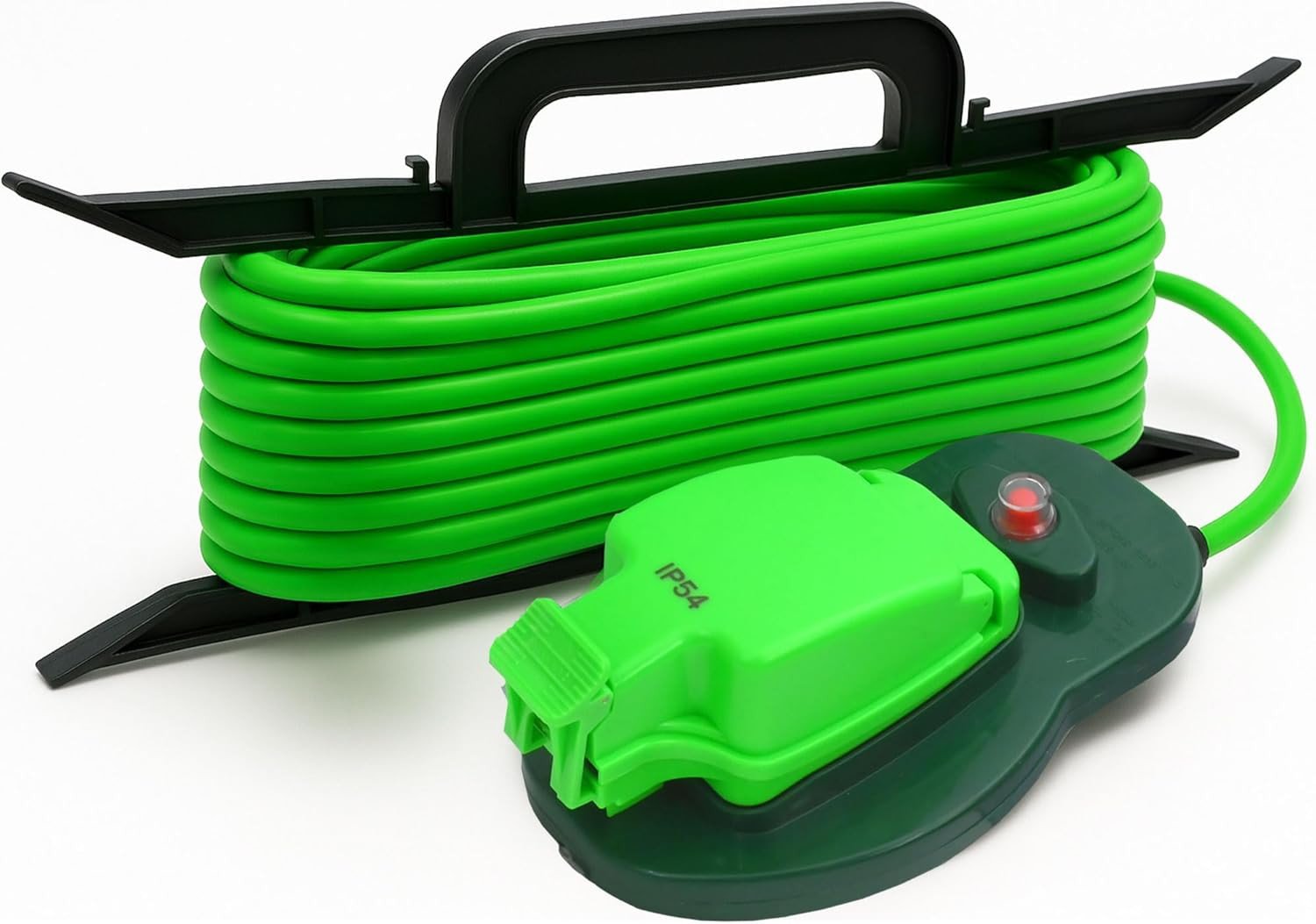 STATUS 1 Socket Extension Lead, 15m Green, Waterproof Outdoor Cable, IP54 Rated,13 Amp Plug, Weatherproof, Heavy Duty Socket, Ideal for Garden Power Tools, DIY Use (1W15M13AIP54HFS6)