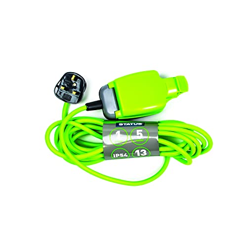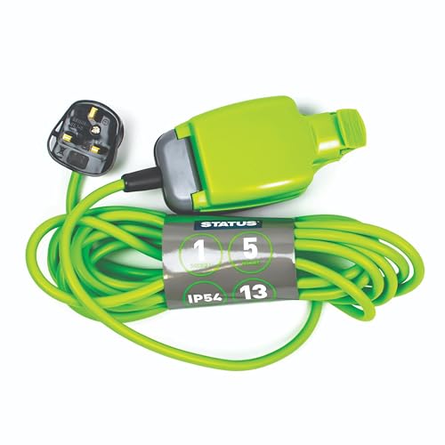 STATUS 1 Socket Extension Lead, 5m Green Extension Cable, 13 amp Weatherproof Socket, 1W5M13AIP54S6