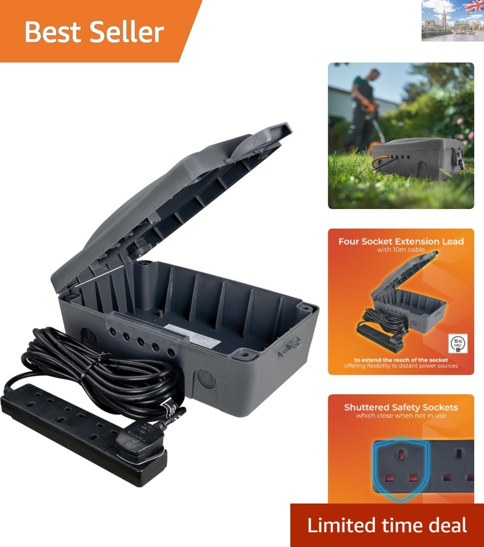 Weatherproof Outdoor Electric Box with 4 Sockets & 10m Extension Lead
