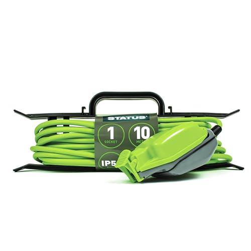 STATUS 10m Extension Lead, Single Socket, Green, Waterproof Outdoor Cable, IP54 Rated, 13 Amp Plug, Weatherproof, Heavy Duty Socket, Ideal for Garden Power Tools, DIY Use (1W10M13AIP54HFS6)