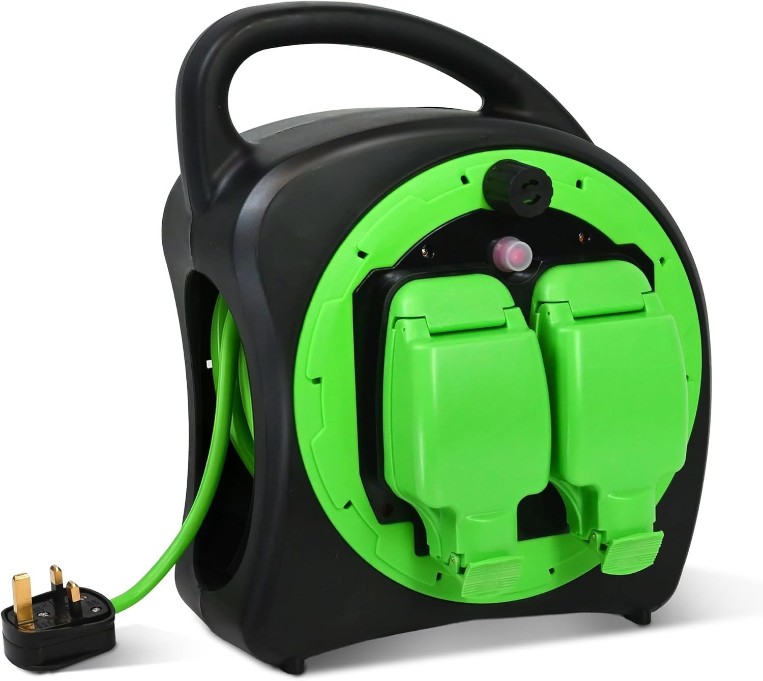 Outdoor Extension Lead Reel 2 Gang Socket Weatherproof IP54 Thermal Cut Out 20m