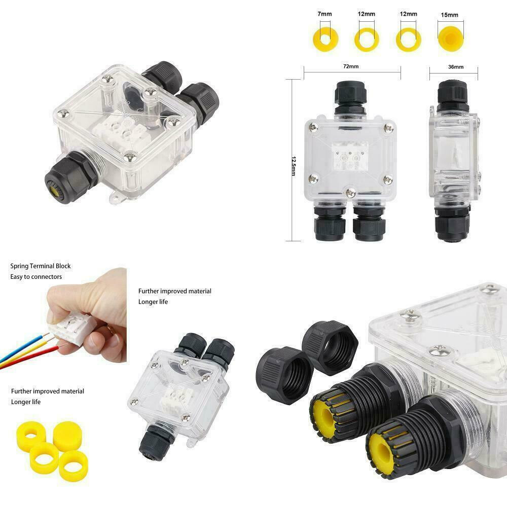 IP68 16A Waterproof 3-Way Connector Box Outdoor Weatherproof Junction Box Clear
