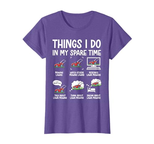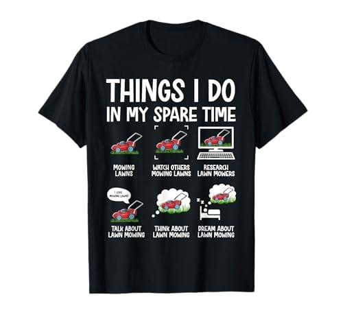Things I Do In My Spare Time Lawn Mowers Apparel Funny Lawn Mower T-Shirt for Landscapers, Gardeners, Men or Groundskeepers - Black, Short Sleeve, V-Neck, Classic Fit - Adult Unisex - Size S