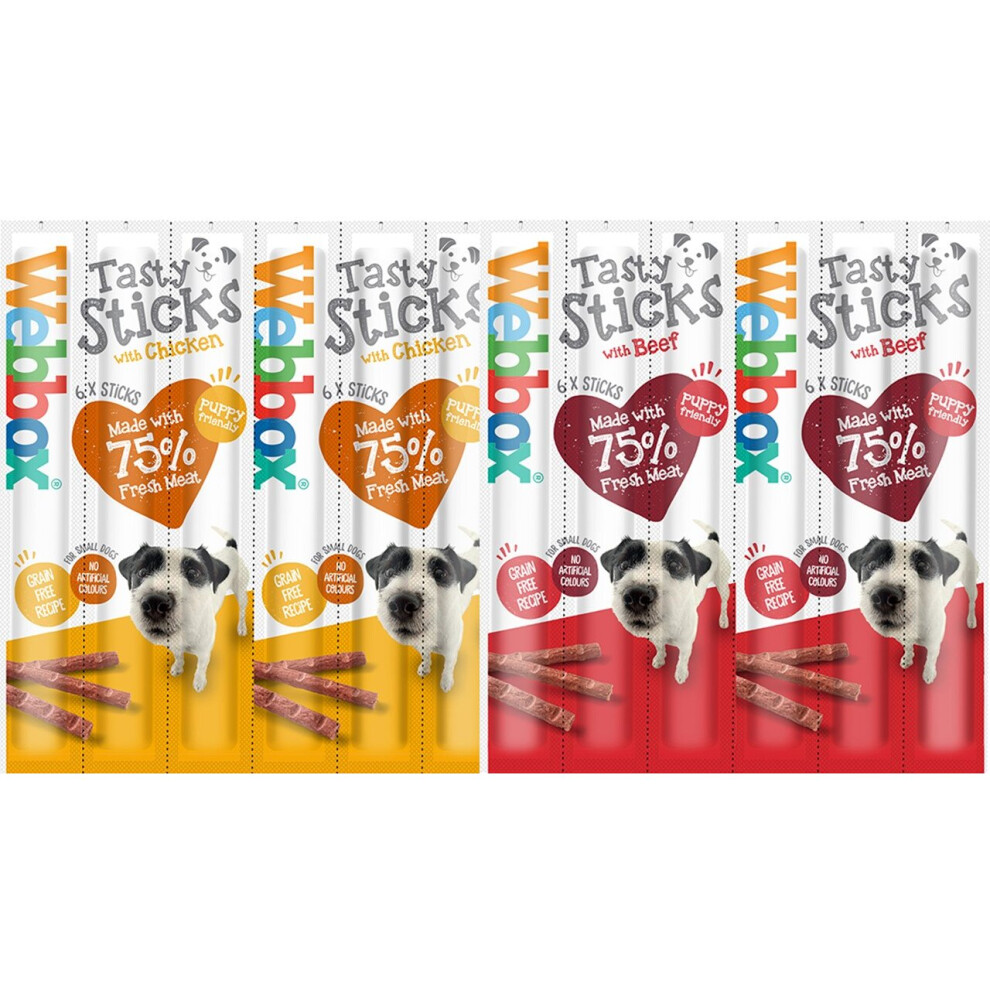 Webbox Dog Delight Variety Pack of 12 (6 x Beef 6 x Chicken) 72 sticks