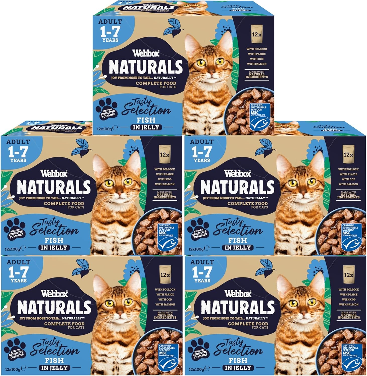 Webbox Naturals Complete Adult Wet Cat Food, 60 x Fish in Jelly Variety Pack - Made with Natural Ingredients and No Nasties (60 x 100g Pouches)