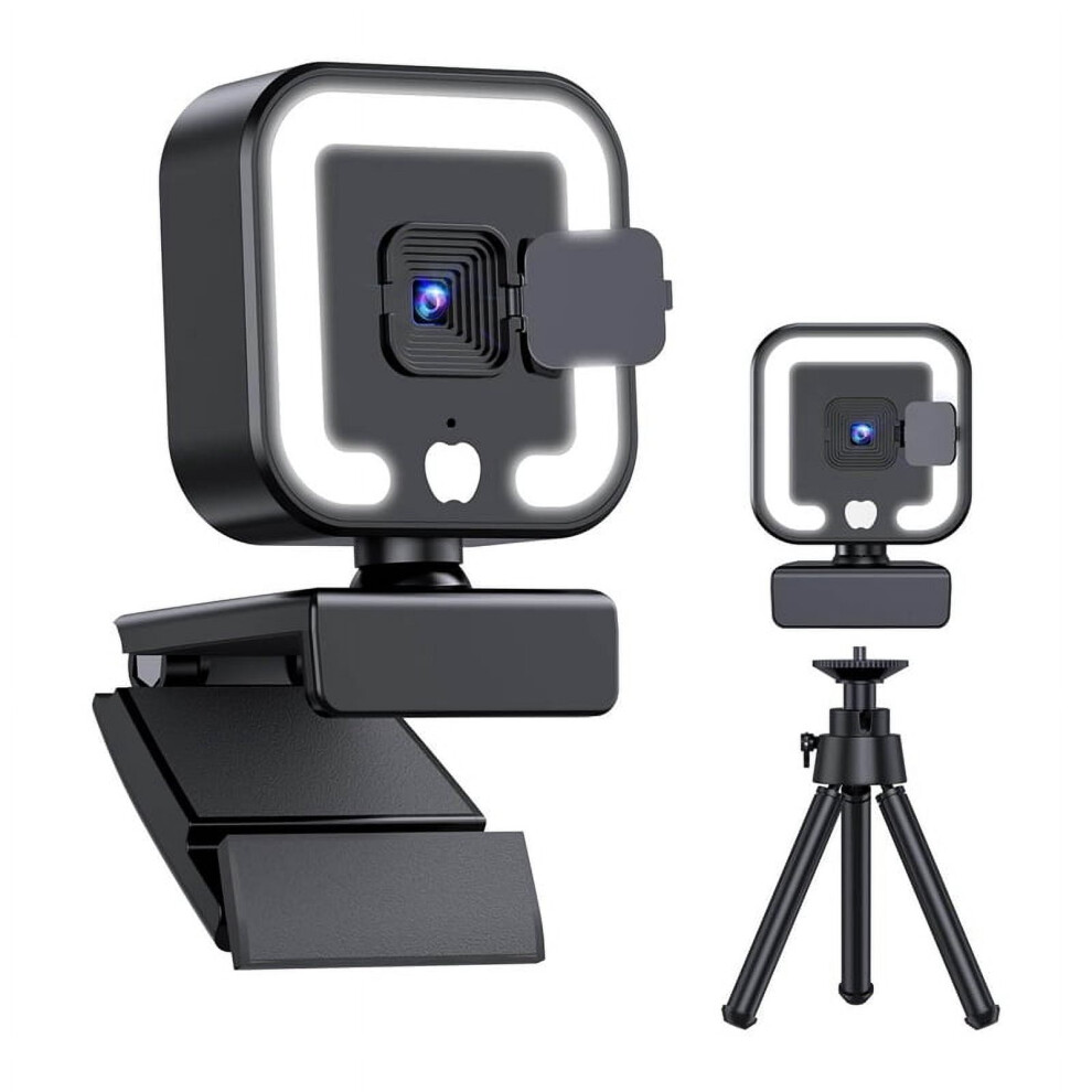 HD Webcam With Microphone And Adjustable Ring Light Full HD Webcam Plug And Play For PC MAC Laptop Wide Angle Webcam Autofocus Privacy Cover Zoom Func
