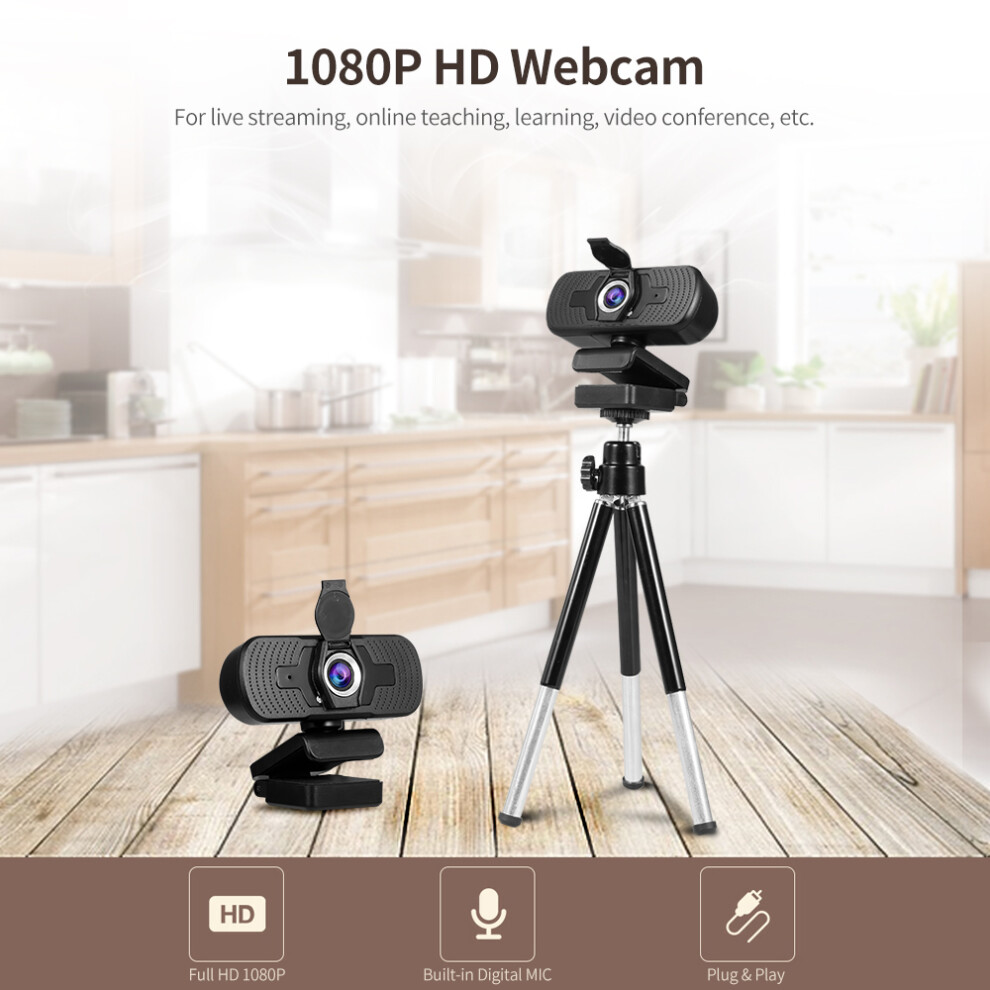 Webcam with Tripod Privacy Shutter: 1080P FHD Web Camera with Mic, Plug & Play