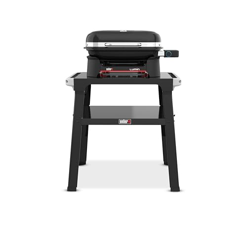 Weber Lumin Compact Electric Grill with Stand, Heats Up to 315°C, with Lid Thermometer, Porcelain-Enamelled Cast Iron Grates, 43 x 32 cm Cooking Area, Black (1501651)